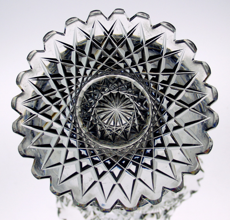 What an awesome shape this is – a pedestaled vase with a ruffled rim. The shape and cutting on this piece are sublime and meld perfectly. The pattern is very close to their No. 136 pattern and may, in fact, match that patent.
