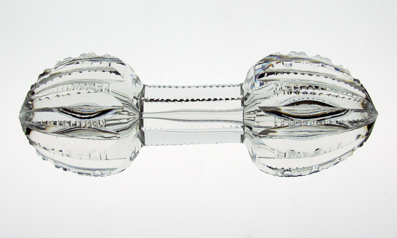 The knife rest is covered in two types of prism – one featuring parallel lines and one with deeper, scooped portions. The shaft of the piece is beveled and notched also. These signed, known to be American knife rests are highly collectible and rare! It is even more seldom to see the Hoare ones.