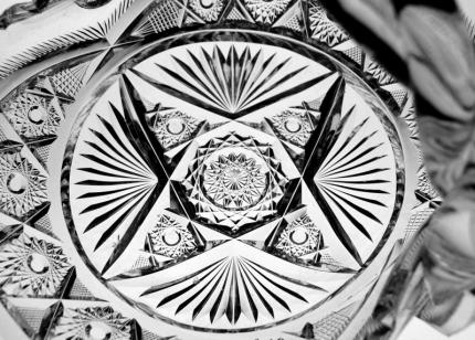 The basket measures 9″ long and 7 3/4″ wide. As mentioned before, one handle attachment is damaged but the basket is in otherwise perfect condition. The glass and cutting is of the highest, brilliant quality.