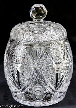 This is one of the most well-done jars I’ve ever seen. The cutting is meticulous, and highly-detailed and covers the entire piece – even the lid is completely cut in pattern.