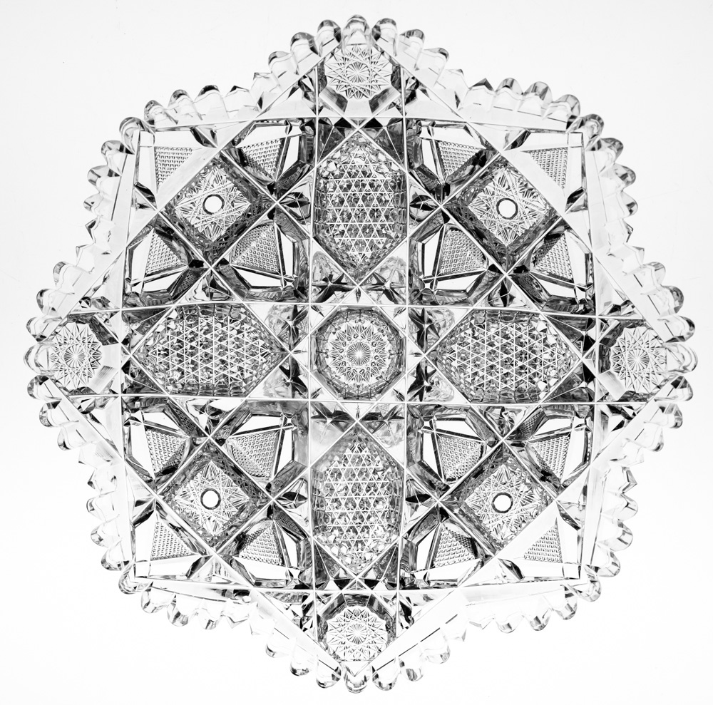 The plate is in perfect condition and on the clearest blank. The cutting is staggeringly deep and the plate is a great size and display of the pattern. It measures 7″ wide and 1 1/2″ tall.